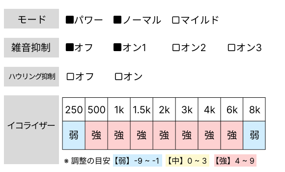 TVの聞き取りにおすすめの設定は、こちらを参考にご調整ください。